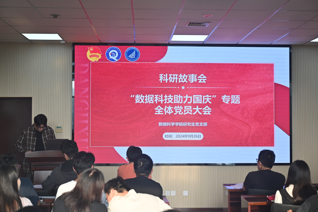 3003新葡的京集团研究生党支部于2024年9月26日召开支部党员大会,以科研故事会的形式进行“数据科技助力国庆”专题全体党员大会。