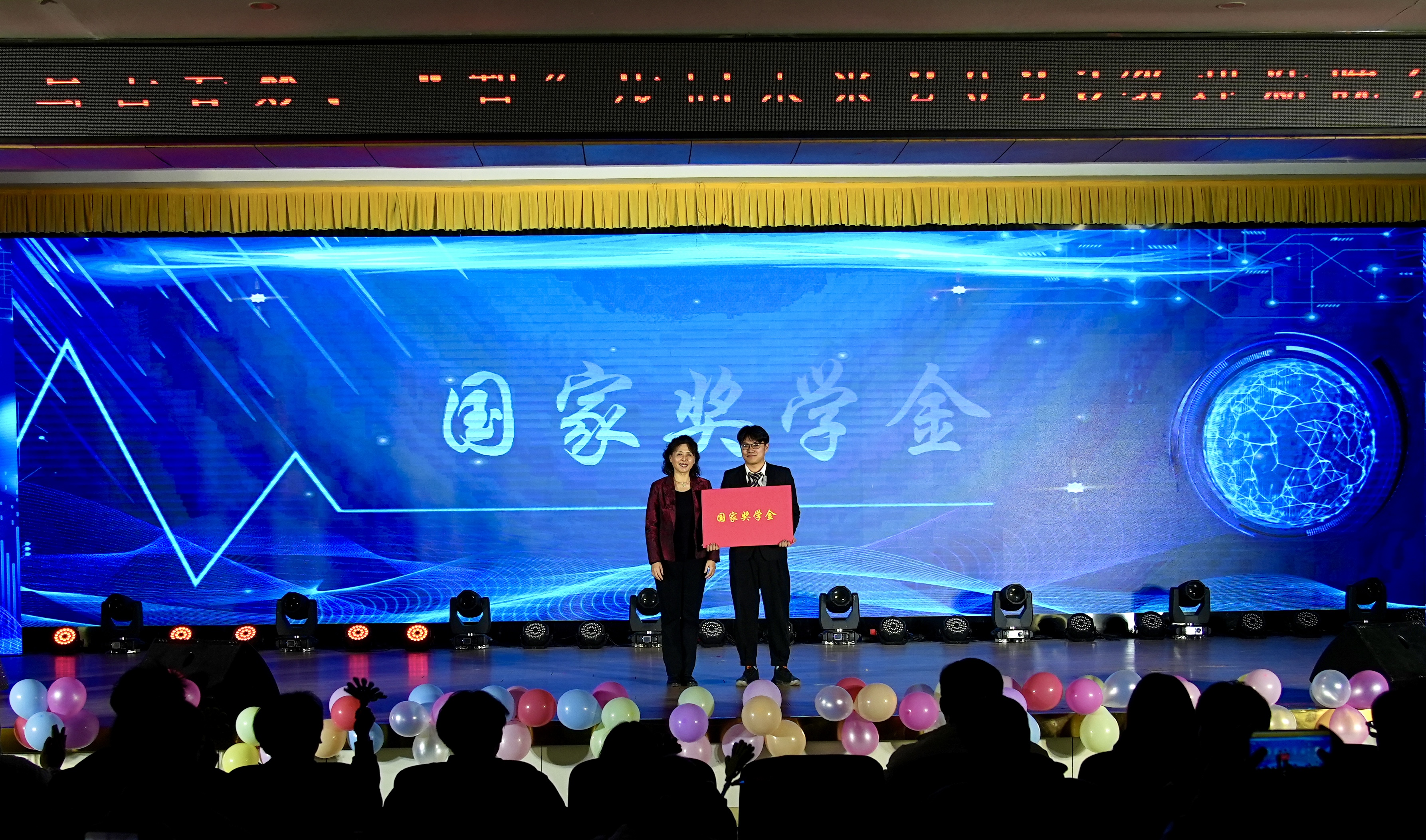 3003新葡的京集团举办“‘数’写青春梦,‘智’步向未来”2023级迎新晚会暨优秀学生表彰大会