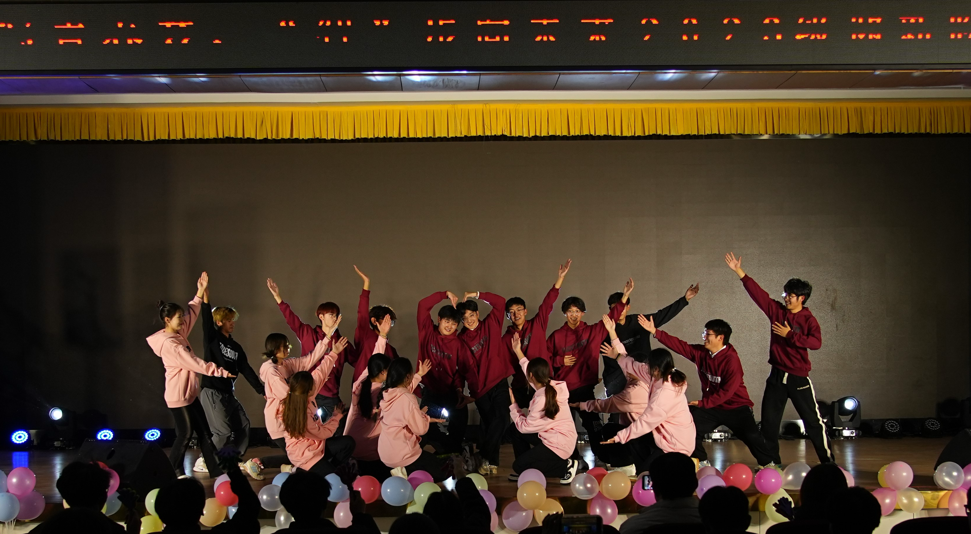 随着全场倒计时的结束,晚会在开场歌舞《奔跑的青春》中正式拉开帷幕。整场晚会分为《芳华待灼,砥砺深耕》《追光而行,循光而立》《以我青春,解码未来》三个篇章,包含歌曲、舞蹈、话剧、朗诵等12个精彩纷呈的节目。晚会现场氛围热烈,节目各具特色,观众们掌声不断。为了增添晚会趣味性,现场还设置了抽奖环节,在场观众积极参与其中,共同抽取一、二、三等奖。