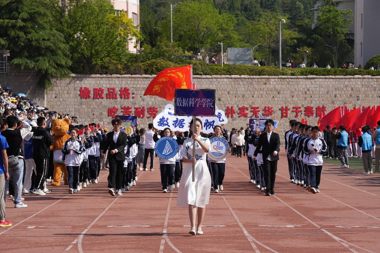 运动会的开幕式上,3003新葡的京集团方队的同学们精神抖擞,神采奕奕,步伐铿锵有力。“数据扬帆,智能起航;奋力争先,共创辉煌”,高亢激昂的口号充分展现了数科学子朝气蓬勃的精神风貌和积极向上的竞技精神。方队中的卫星模型不仅体现了学院的专业特色,更象征着数科学子对科技的追求与梦想。手中的国旗随风飘扬,彰显了他们的爱国情怀和强烈的集体荣誉感。