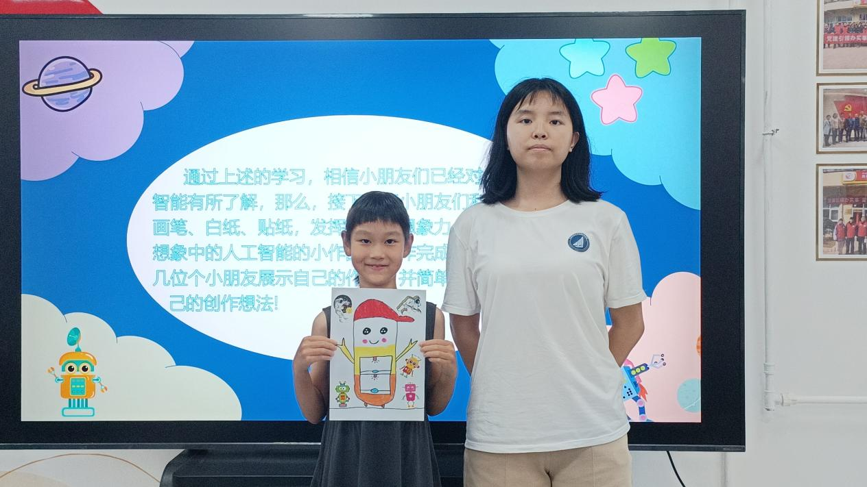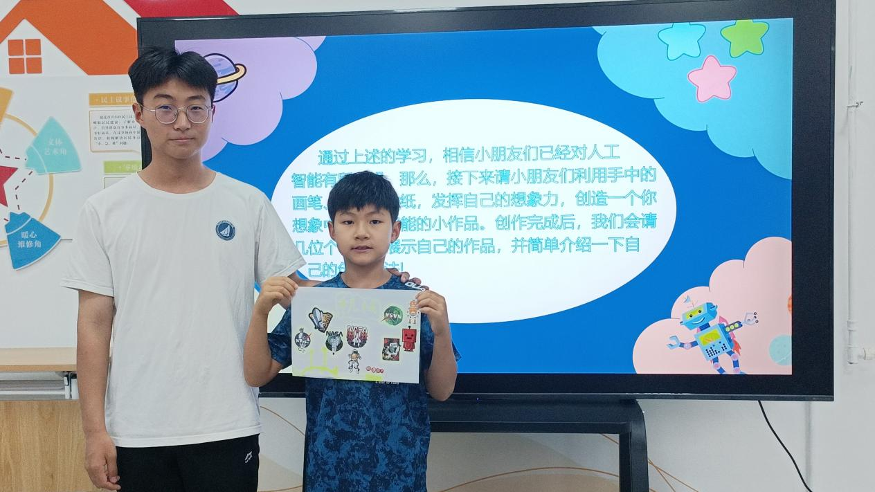 互动体验环节更是是高潮迭起、精彩纷呈。在“AI 写诗”活动中,孩子们怀着好奇与期待,访问诗三百或九歌——人工智能写诗系统,兴致勃勃地输入自己喜欢的关键词或充满幻想的主题,当独特而优美的诗作瞬间生成时,孩子们的脸上绽放出惊喜与自豪的笑容。“AI 绘画”环节同样充满了惊喜与欢乐。孩子们在体验 AI 绘画的过程中,通过输入充满想象力的文字描述或精心选择心仪的风格,一幅幅如梦如幻、充满奇思妙想的画作便呈现在眼前。而在奇思妙想环节中,小朋友们拿到了丰富多样的手工材料,如色彩斑斓的卡片、充满科技感的小贴纸、五彩的画笔等。他们充分发挥天马行空的想象力,用心制作出了与人工智能相关的小作品。有的小朋友精心绘制了生动可爱、功能强大的智能机器人图案,仿佛它能随时为人们排忧解难;有的则独具匠心地制作出了充满未来感的智能小屋模型,让人对未来的居住环境充满憧憬。