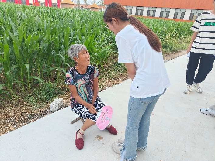 志愿服务团一行首先聚焦于羊沟营村在政府指导下的新型农村管理模式。通过与村干部的深入交流,他们了解到,羊沟营村依托“村两委+合作社+农户”的模式,有效整合了土地资源与人力资源,实现了村庄管理的民主化、科学化。同时,政府还大力支持乡村文化建设,不仅修缮了传统文化建筑,还定期举办文化节、农民艺术展等活动,丰富了村民的精神文化生活,增强了村民的文化自信与归属感。