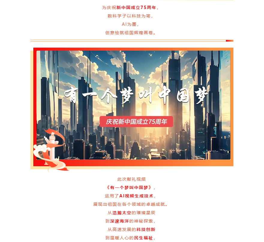 3003新葡的京集团创新爱国主义教育的方式方法,将其融入学生专业知识的学习实践中,开展了“代码传情:三行代码颂祖国”活动,学生运用所学的编程知识,用三行代码表达对祖国的热爱和祝福;开展“时光焕彩:AI唤醒老照片的祖国记忆”活动,同学们收集具有历史意义的与祖国发展相关的照片,运用人工智能技术,如图像修复、上色、动态化等手段,让老照片焕发生机;院学生会运用AI视频生成技术,创新出品AI献礼视频《有一个梦叫中国梦》,让青年学子在提升专业本领的同时,以拳拳之心告白祖国。