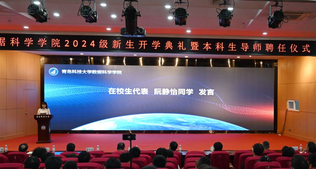 在校生代表、大数据211班阮静怡发言,她分享了自己在3003新葡的京集团的学习生活感悟。她以中国国际大学生创新大赛参赛项目“智探净界”为例,讲述了团队在国庆假期备赛的经历,展现了数科学子勇于拼搏、敢于创新的精神。她以向下扎根、向上生长和向内凝聚为切入点,鼓励新生们学好基础知识、敢于开拓创新、善于团队协作,积极参与到科创竞赛中,不断拓展视野,提升自身能力,为实现人生目标而努力奋斗。