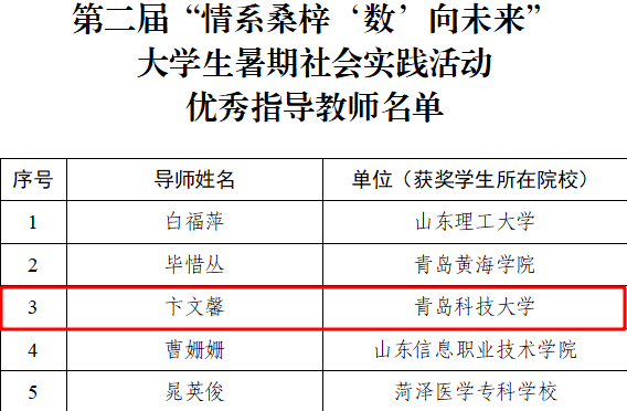 近日,由山东省大数据局、共青团山东省委、山东省教育厅联合举办的第二届“情系桑梓 ‘数’向未来”大学生暑期社会实践活动结果公布,新葡京官网荣获优秀指导教师一名,一等奖一项,优秀奖一项。