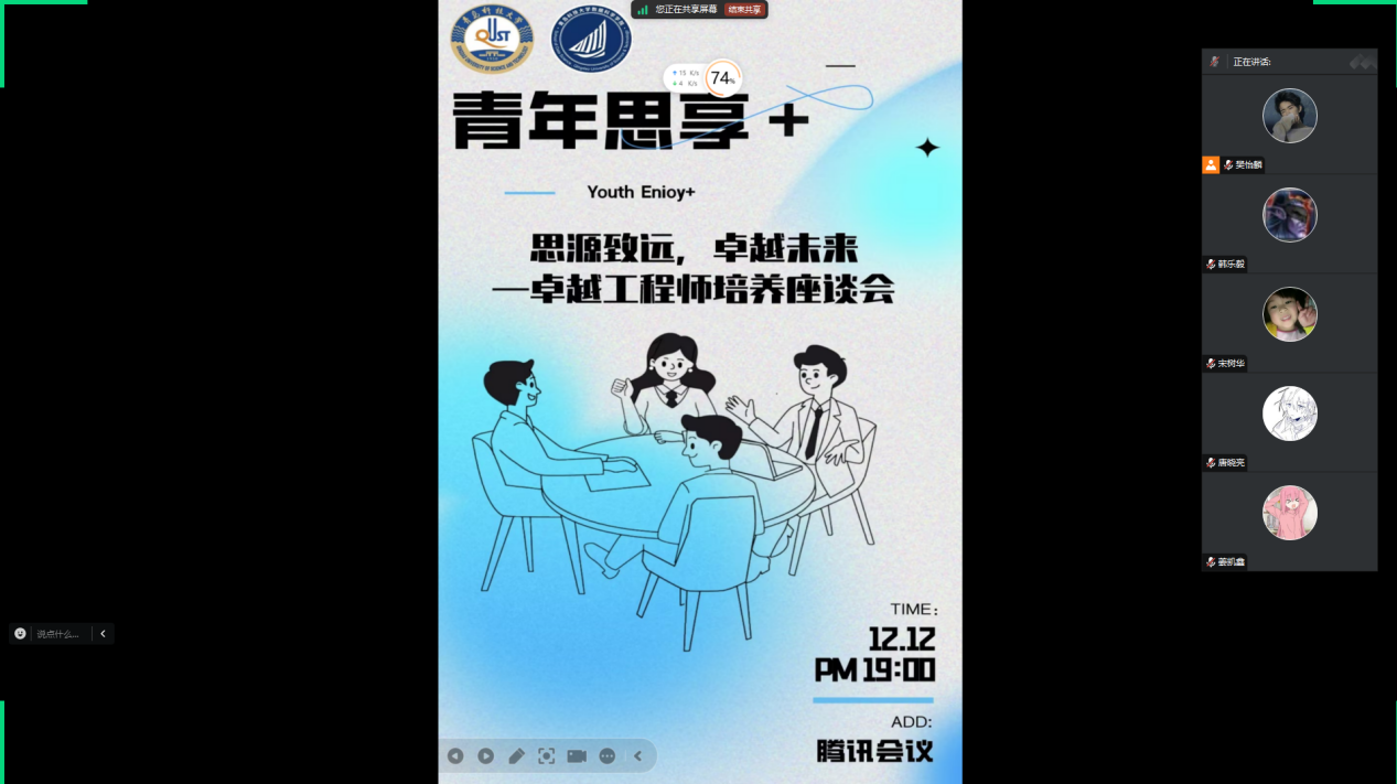 12月11日晚上,3003新葡的京集团线上召开“青年思享+”卓越工程师培养座谈会。3003新葡的京集团党总支副书记兼副院长顾姗姗主持会议,副院长李辉,卓越工程师负责老师陈卓,赛轮集团股份有限公司、软控股份有限公司、中科星图智慧科技有限公司和青岛思锐卓远信息技术有限公司的企业导师参加座谈。