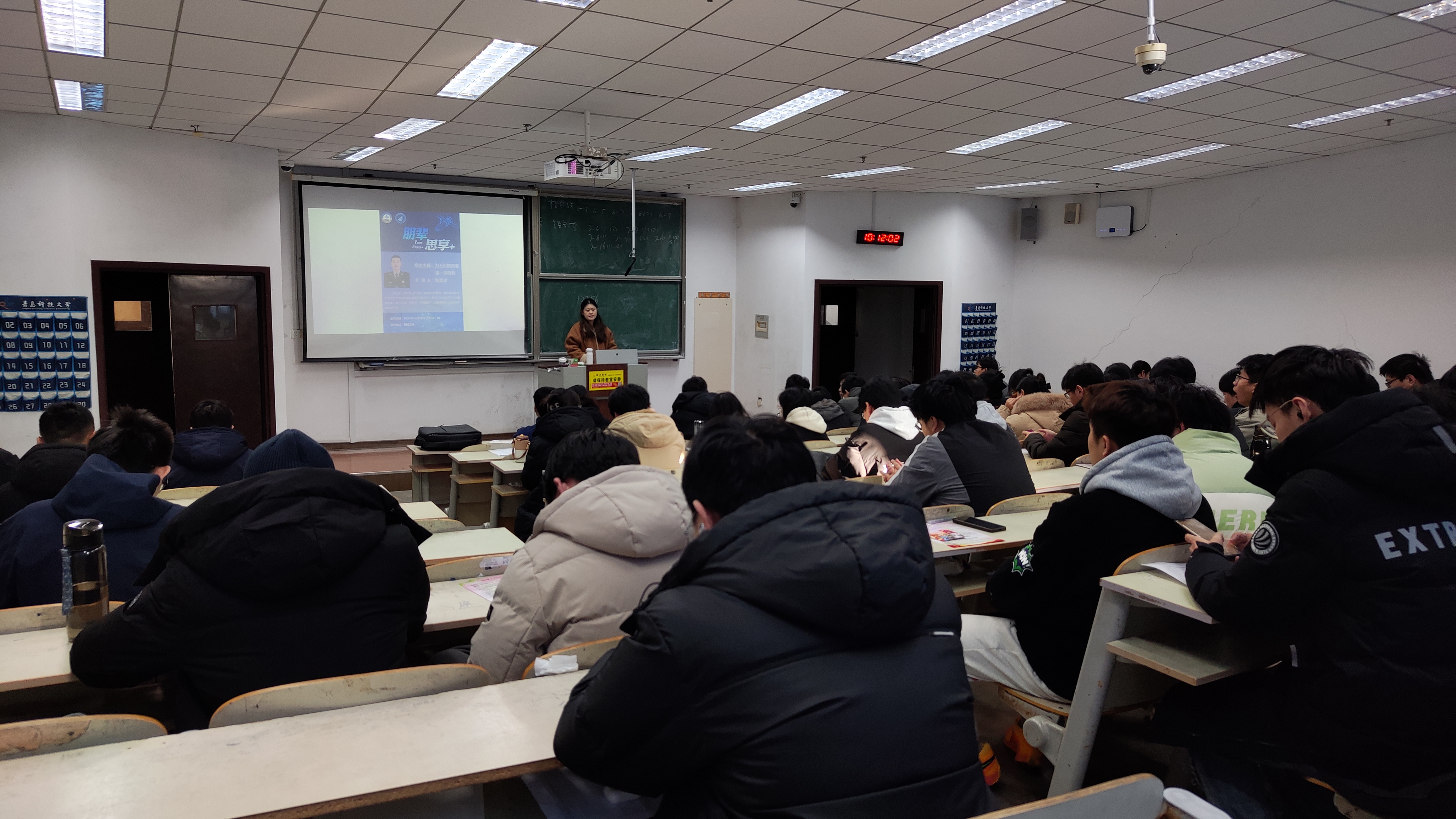 张孟渲以“为五彩的青春添一抹绿色”为题,分享自己在军营的生活点滴。他从日常训练的艰苦与收获,到与战友们并肩作战的深厚情谊,生动地展现了军营生活的丰富多彩和充满挑战。同时,他深入解读了2025年大学生征兵政策,从当前国家征兵形势出发,详细介绍了征兵条件、流程、待遇及未来发展等学生关心的热点问题,并特别针对学生关注的学费补偿、部队提干及退伍后安置等问题进行了详尽的政策说明,讲述了投身火热军营,献身国防事业的重要性,使参会师生对征兵政策有了更加全面和深入的了解。