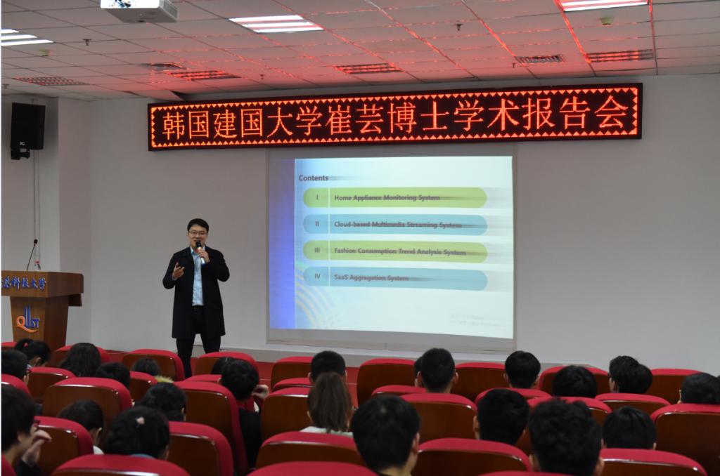 报告会第一阶段由宋廷强介绍了崔芸博士的经历;第二阶段由崔芸博士做了“关于大数据分析技术”的报告会,崔芸博士首先讲解了大数据的相关热门技术,接着以博士期间的大数据项目为例,讲解了软件即服务、云服务等相关技术;第三阶段为学生提问环节,崔芸博士分享了自己在韩国的生活经历等。