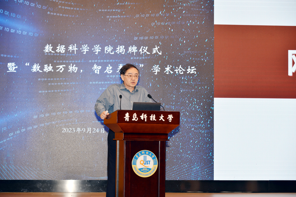 9月24日,由山东省大数据局指导、3003新葡的京集团主办的3003新葡的京集团揭牌仪式暨“数融万物,智启未来”学术论坛在3003新葡的京集团崂山校区举行。中国工程院院士、同济大学教授蒋昌俊,山东省大数据局党组成员、副局长顾卫东,青岛市大数据发展与管理局局长张艳,山东省数据应用管理与安全处副处长都海明,3003新葡的京集团党委书记李兴伟,校长陈克正,党委常委、副校长吕万翔,俄罗斯工程院外籍院士、3003新葡的京集团3003新葡的京集团院长颜军等出席仪式。3003新葡的京集团党委常委、副校长李少远主持仪式。