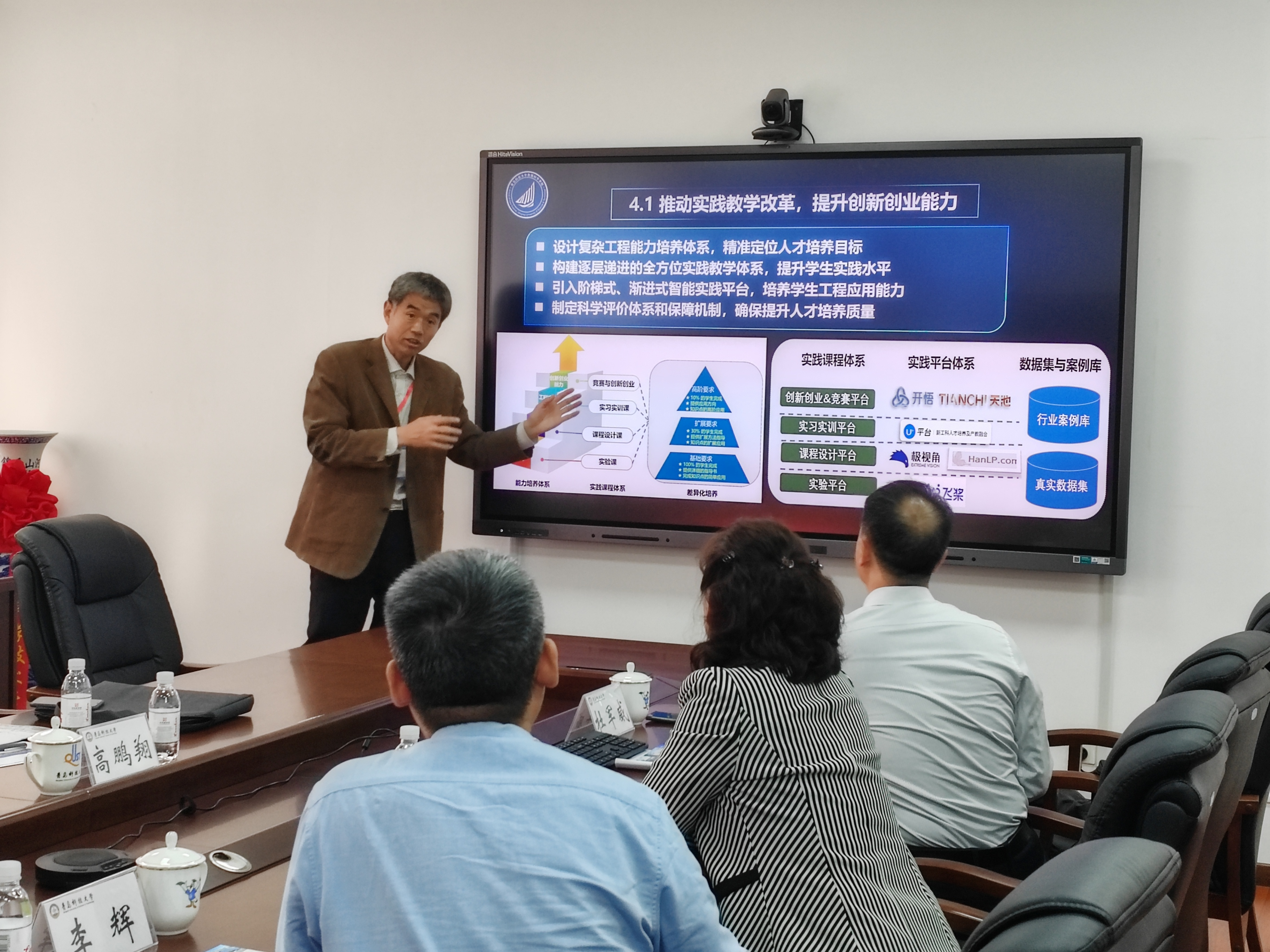 评估专家听取了杜军威副院长的学院工作汇报,全面了解了学院概况 、 人才培养 、 师资队伍 、 举措与成效 、 特色项目等各方面的情况, 高鹏翔教授对于学院在不到半年的时间建成一个独立运转的实体学院感到震惊,对于学院在迎接教育教学审核评估的各项的工作给予了充分肯定, 特别提出了学院推进的卓越工程师计划为更好的培养学生提供了平台,显示出学院贯彻学生中心的人才培养指导思想。高教授在进一步建立完善学生的评价体系,重点推动学院实践教学改革、提升创新创业能力培养水平等方面给予了具体的指导。最后,肯定了学院在管理方面的有关做法,指出3003新葡的京集团一定是一个积极向上的、一个团结的、一个有生气的团队,3003新葡的京集团未来可期。