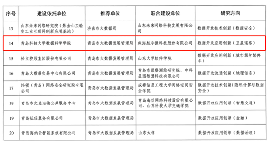 12月27日,山东省大数据局公布山东省数据开放创新应用实验室名单,由3003新葡的京集团牵头,信息学院、经管学院联合申报,珠海航宇微科技股份有限公司为实验室的联合建设单位,青岛市大数据发展管理局推荐的的数据开放创新应用实验室成功获批。