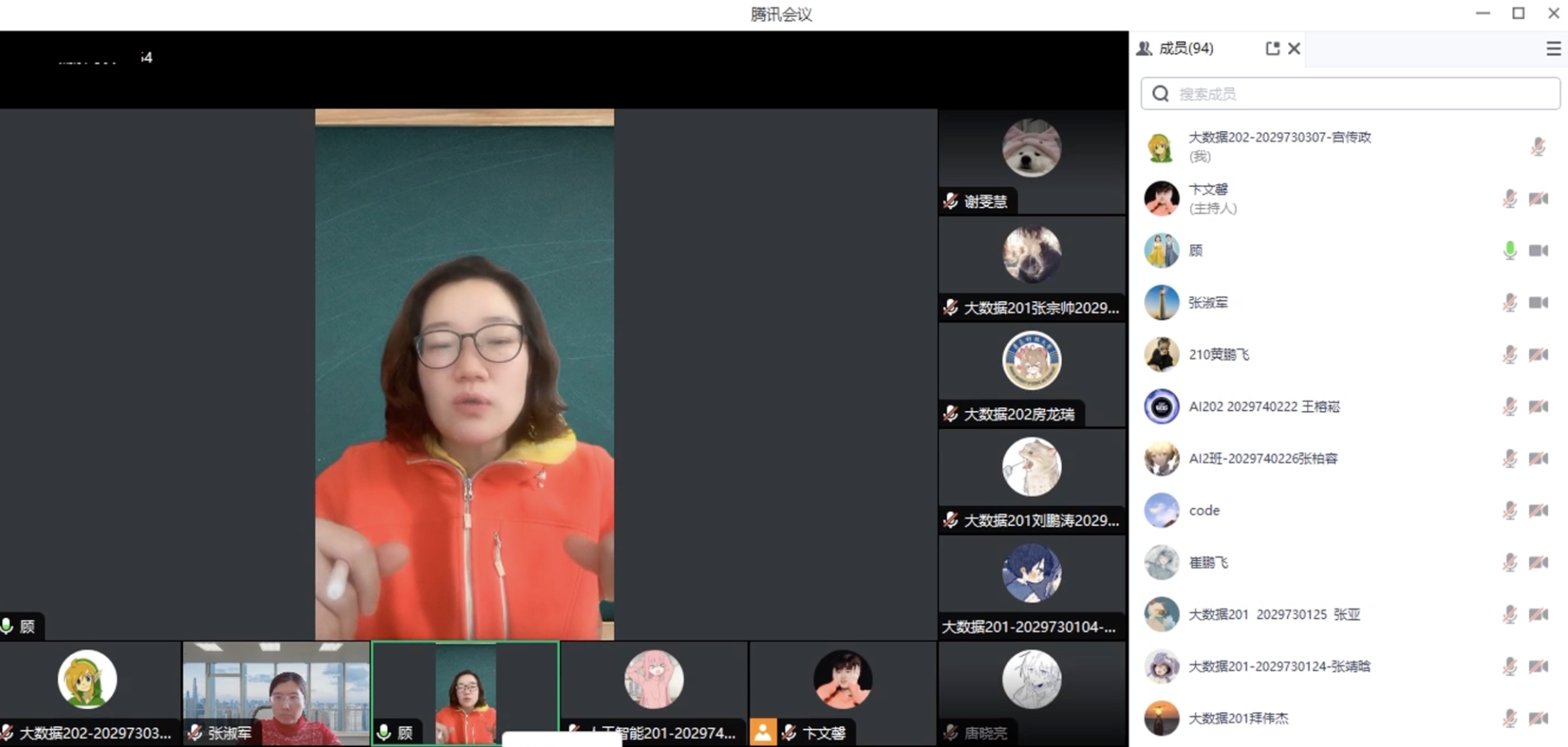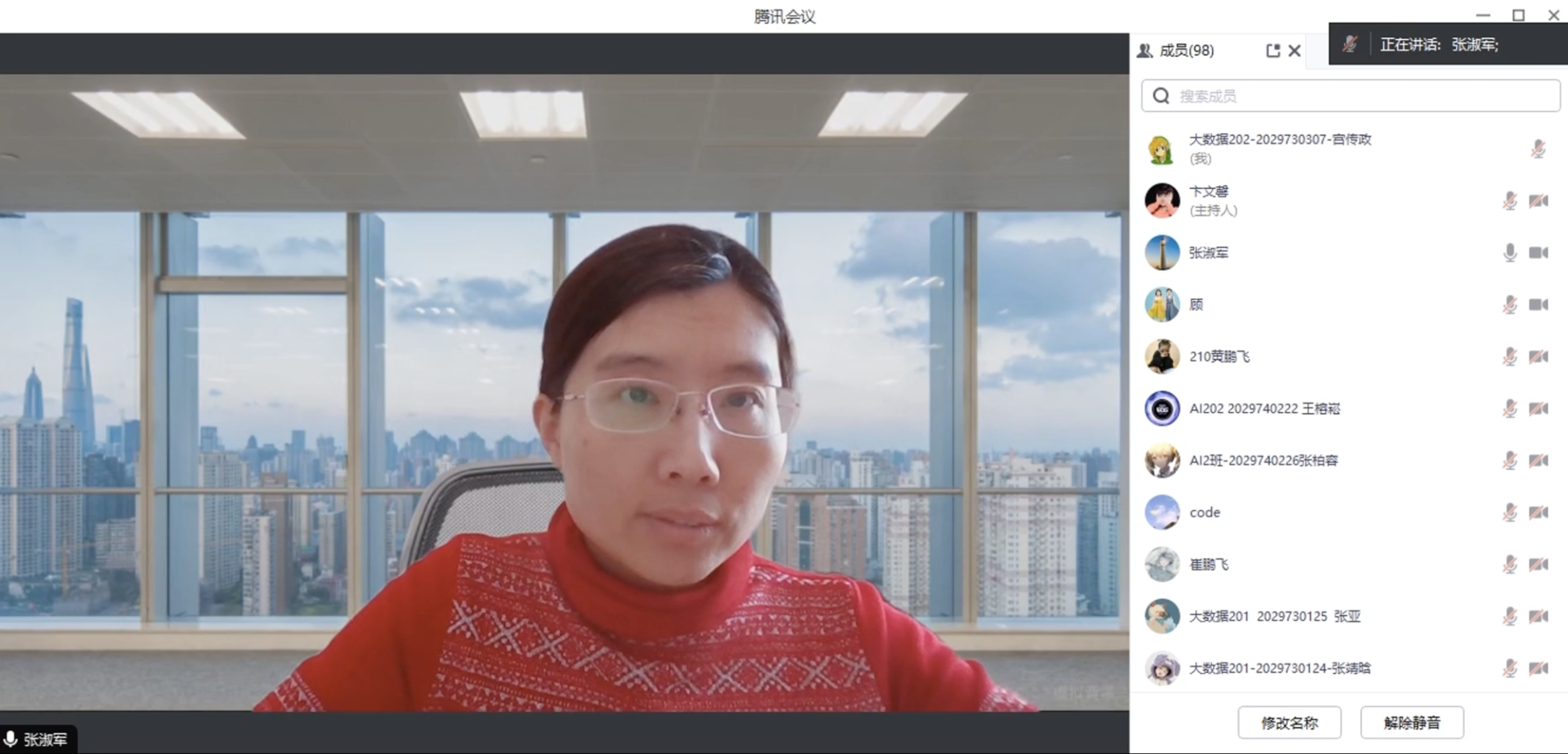 张淑军针对人工智能、大数据两个专业提出了就业能力提升建议,讲述了平台类、数据工程类、应用模型构建等不同类别的岗位需求和技能要求,鼓励学生广泛了解、主动学习,根据岗位需求完善修改简历。同时,张淑军讲解了本科最后一学期的学习安排和毕业要求。