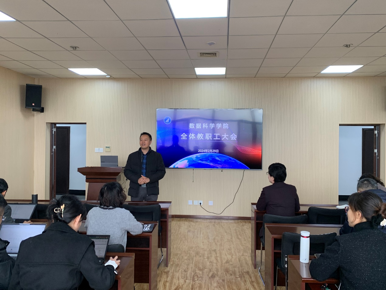 2月29日上午,3003新葡的京集团在图书馆A区4008会议室召开全体教职工大会,常务副院长杜军威主持会议。