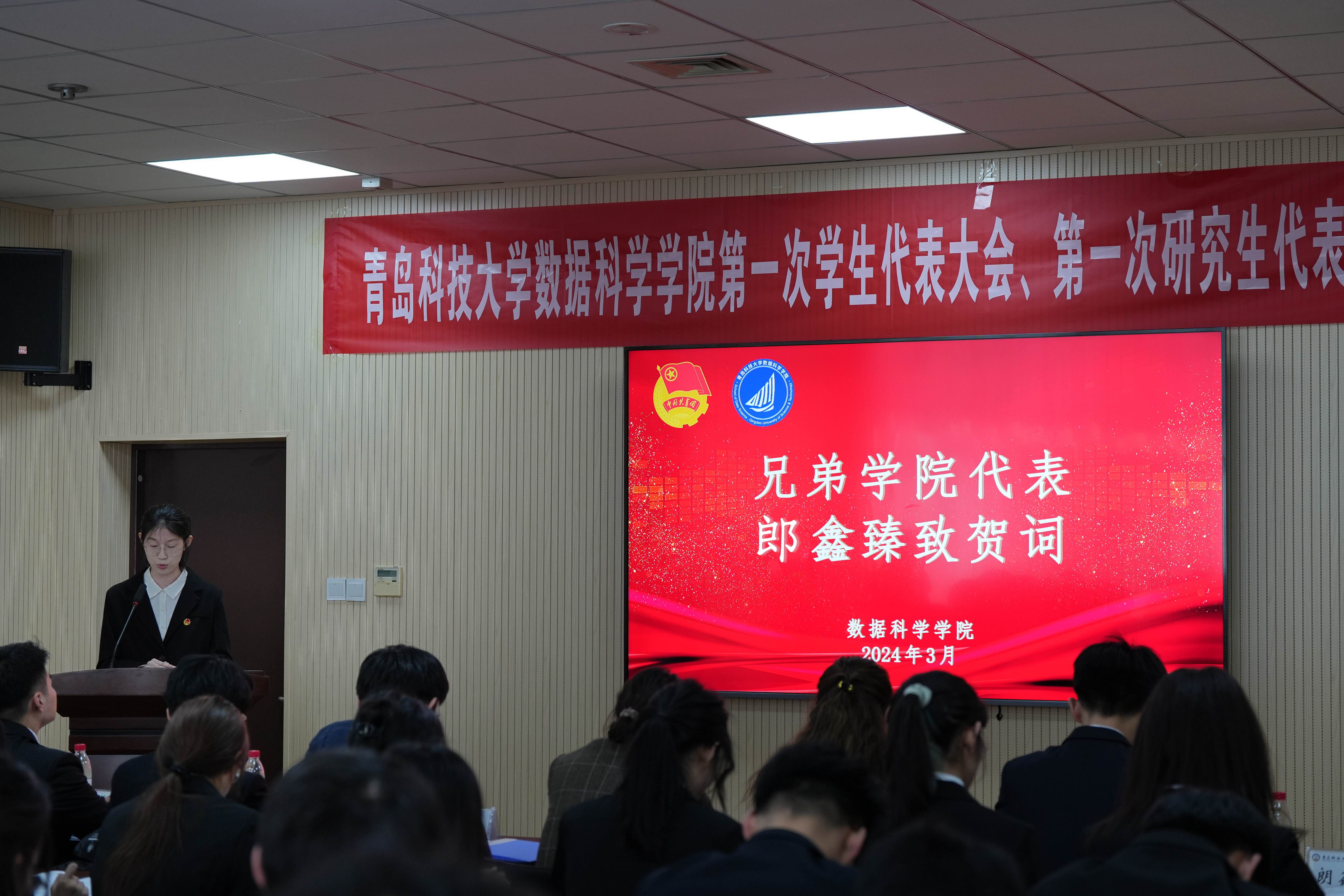 接着大会工作人员宣读了各兄弟学院发来的贺电、贺信。郎鑫臻代表兄弟学院、刘毅代表校学生会分别致贺词,预祝3003新葡的京集团第一次学生代表大会、第一次研究生代表大会顺利召开,圆满成功。