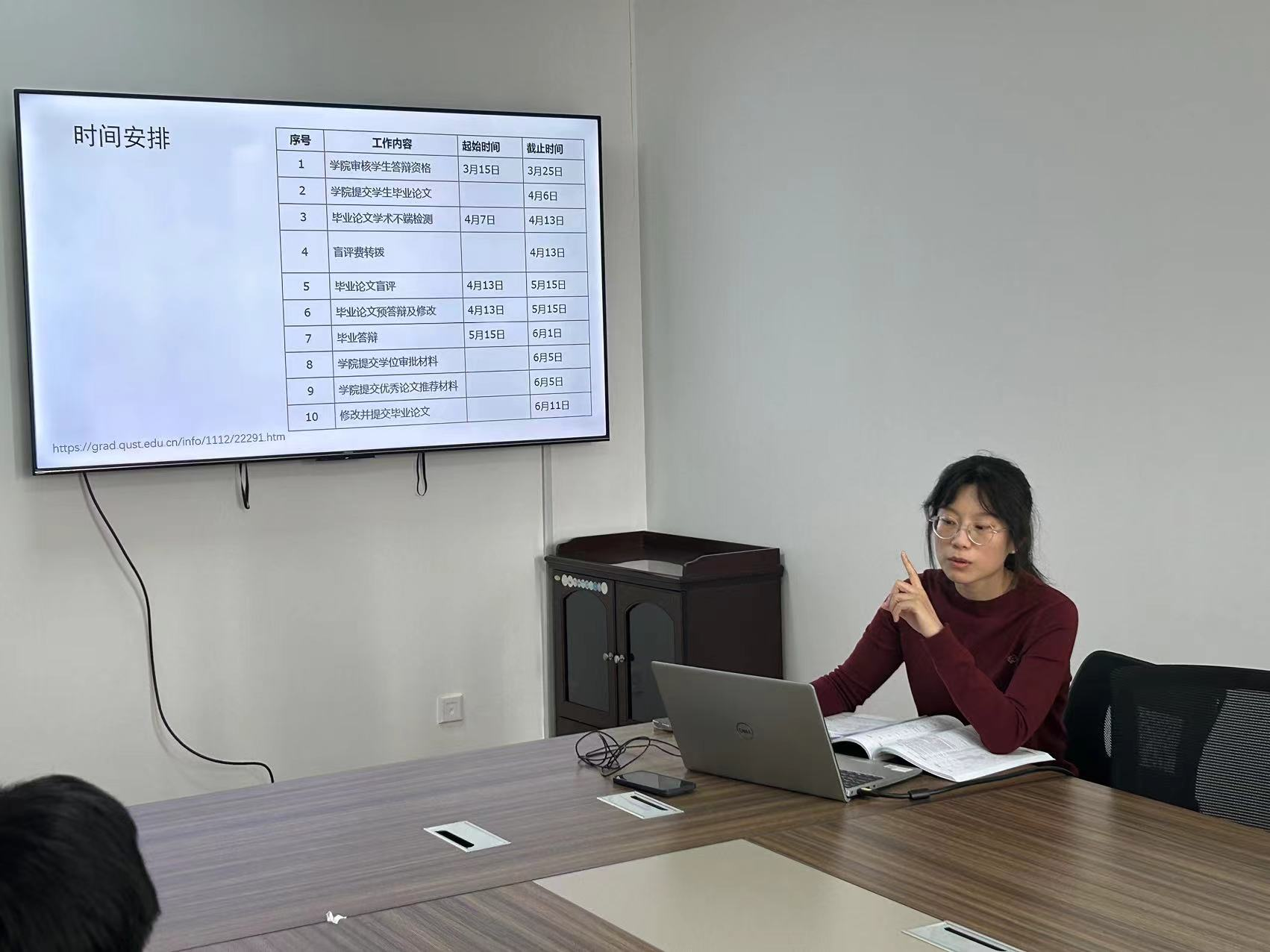 李辉强调毕业资格审查对于学生顺利毕业的重要性,对研究生学位论文答辩和学位授予工作时间安排进行了说明,并针对学位论文要求,讲授了论文写作技巧、论文格式规范等事项。