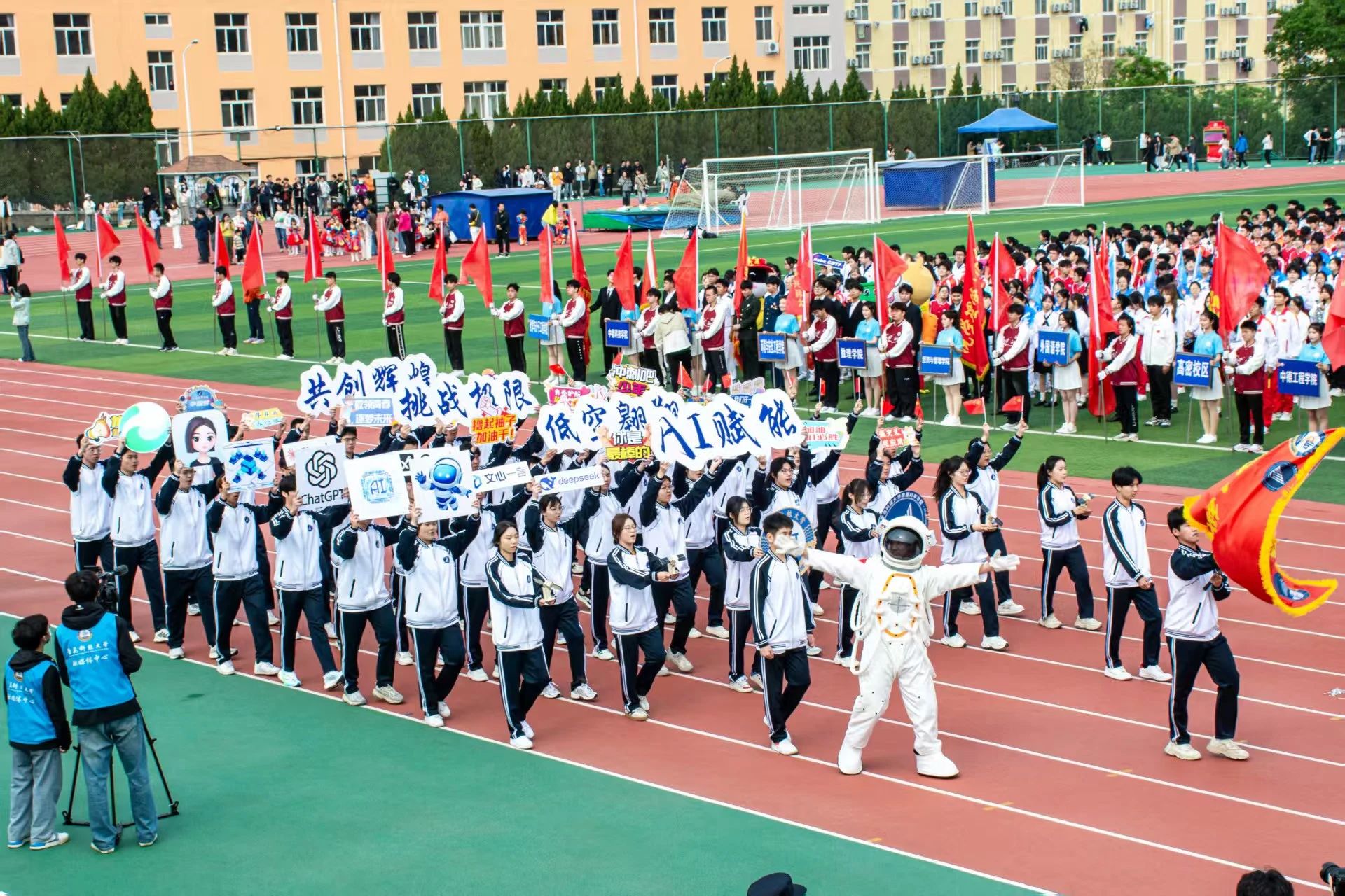 在庄严的开幕式中,3003新葡的京集团方队迈着整齐划一的步伐踏入赛场。他们高喊“AI赋能,低空翱翔;挑战极限,共创辉煌”,传达出3003新葡的京集团学子昂扬的精神状态,展现了他们积极进取、不懈拼搏的竞技风采。
