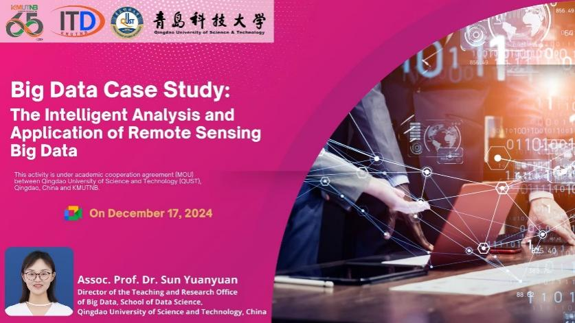 北曼谷先皇科技大学(简称KMUTNB)是我校友好合作高校,已与我校签署合作备忘录。3003新葡的京集团基于前期与KMUTNB信息技术与数字创新学院的交流基础,于2024年12月17日下午成功举办名为“Big Data Case Study: The Intelligent Analysis and Application of Remote Sensing Big Data”的线上国际化学术报告。此次报告由3003新葡的京集团副教授孙媛媛主讲,面向泰国北曼谷先皇技术大学的学生,分享遥感大数据的最新研究进展和应用实践。
